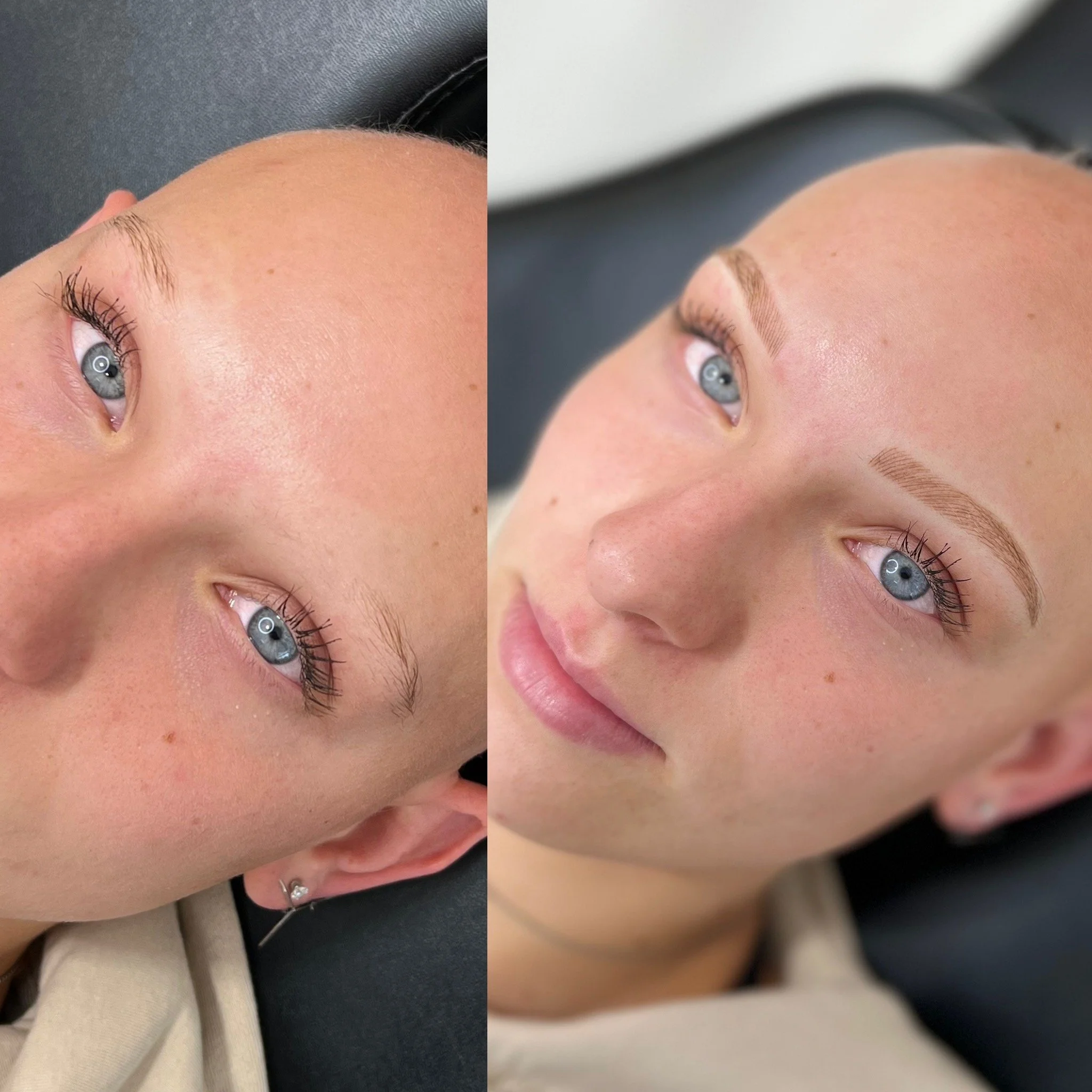 Microblading is a procedure in which pigment is deposited into the epidermis in hair-like strokes using a fine blade. It is semi-permanent and results in natural looking brows. Microblading is an art, and not an exact science, and that is why we have an experienced artist that will give you a custom experience.